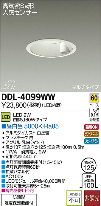 DAIKO Âç¸÷Åŵ¡ ¿Í´¶¥»¥ó¥µ¡¼ÉÕLED¥À¥¦¥ó¥é¥¤¥È DECOLED¡ÇS(LED¾ÈÌÀ) DDL-4099WW