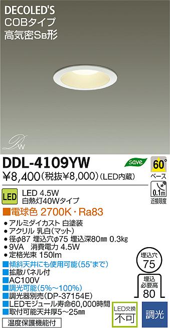 DAIKO Âç¸÷Åŵ¡ LED DECOLED¡ÇS(LED¾ÈÌÀ) ¥À¥¦¥ó¥é¥¤¥È DDL-4109YW