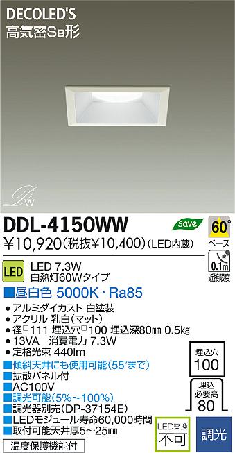 DAIKO Âç¸÷Åŵ¡ LED DECOLED¡ÇS(LED¾ÈÌÀ) ¥À¥¦¥ó¥é¥¤¥È DDL-4150WW