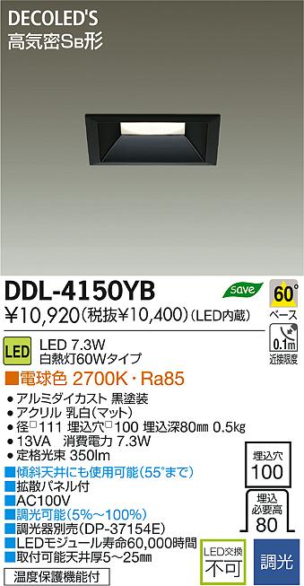 DAIKO Âç¸÷Åŵ¡ LED DECOLED¡ÇS(LED¾ÈÌÀ) ¥À¥¦¥ó¥é¥¤¥È DDL-4150YB