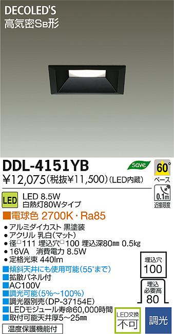 DAIKO Âç¸÷Åŵ¡ LED DECOLED¡ÇS(LED¾ÈÌÀ) ¥À¥¦¥ó¥é¥¤¥È DDL-4151YB