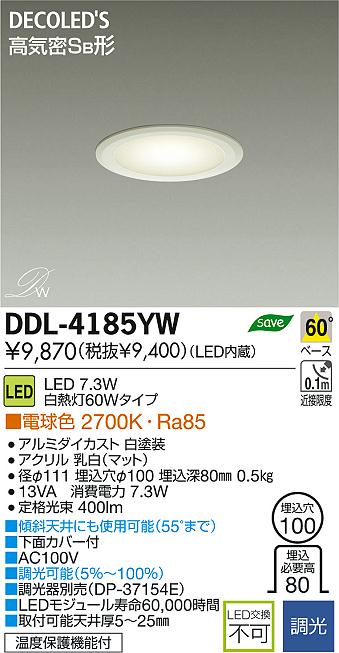 DAIKO Âç¸÷Åŵ¡ LED DECOLED¡ÇS(LED¾ÈÌÀ) ¥À¥¦¥ó¥é¥¤¥È DDL-4185YW