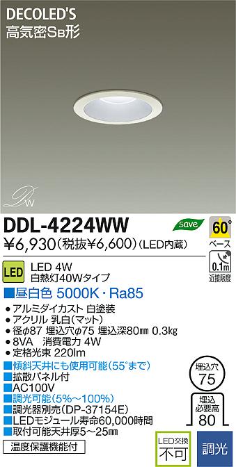 DAIKO Âç¸÷Åŵ¡ LED DECOLED¡ÇS(LED¾ÈÌÀ) ¥À¥¦¥ó¥é¥¤¥È DDL-4224WW