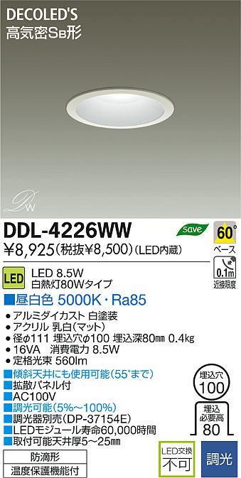 DAIKO Âç¸÷Åŵ¡ LED DECOLED¡ÇS(LED¾ÈÌÀ) ¥À¥¦¥ó¥é¥¤¥È DDL-4226WW
