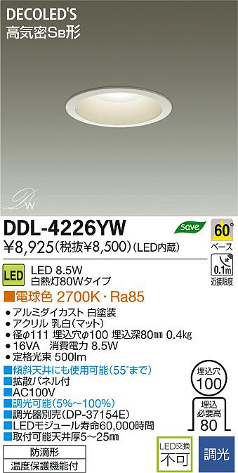 DAIKO Âç¸÷Åŵ¡ LED DECOLED¡ÇS(LED¾ÈÌÀ) ¥À¥¦¥ó¥é¥¤¥È DDL-4226YW