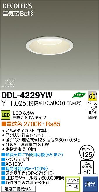 DAIKO Âç¸÷Åŵ¡ LED DECOLED¡ÇS(LED¾ÈÌÀ) ¥À¥¦¥ó¥é¥¤¥È DDL-4229YW