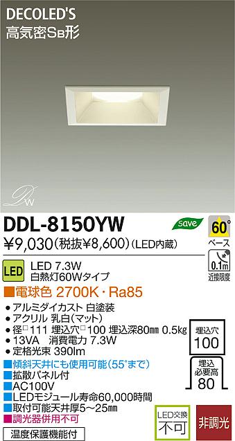 DAIKO Âç¸÷Åŵ¡ LED DECOLED¡ÇS(LED¾ÈÌÀ) ¥À¥¦¥ó¥é¥¤¥È DDL-8150YW