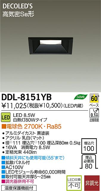 DAIKO Âç¸÷Åŵ¡ LED DECOLED¡ÇS(LED¾ÈÌÀ) ¥À¥¦¥ó¥é¥¤¥È DDL-8151YB