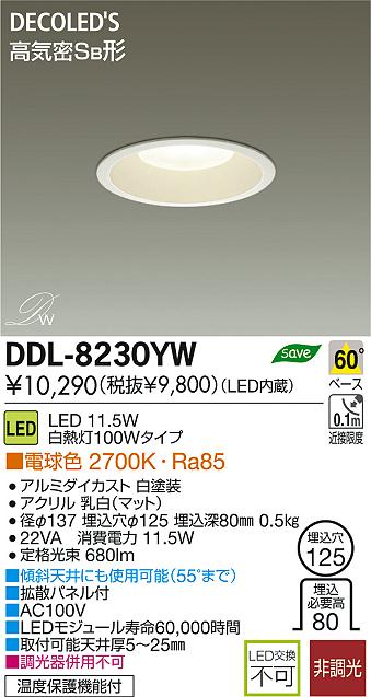DAIKO Âç¸÷Åŵ¡ LED DECOLED¡ÇS(LED¾ÈÌÀ) ¥À¥¦¥ó¥é¥¤¥È DDL-8230YW
