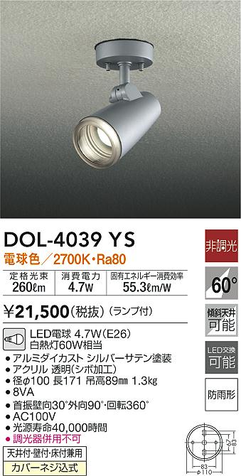 DAIKO Âç¸÷Åŵ¡ ¥¢¥¦¥È¥É¥¢¥¹¥Ý¥Ã¥È DOL-4039YS