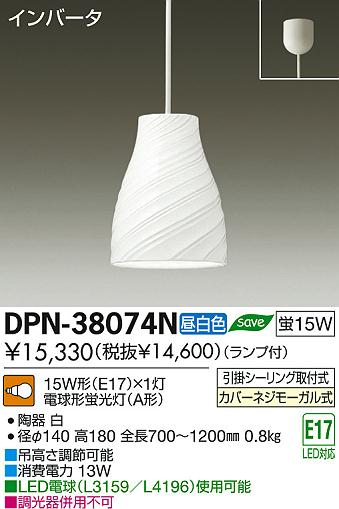 DAIKO Âç¸÷Åŵ¡ ¾®·¿¥Ú¥ó¥À¥ó¥È DPN-38074N