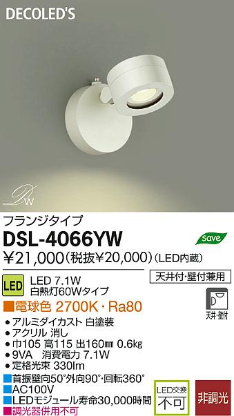 DAIKO Âç¸÷Åŵ¡ LED¥¹¥Ý¥Ã¥È¥é¥¤¥È DECOLED¡ÇS(LED¾ÈÌÀ) DSL-4066YW
