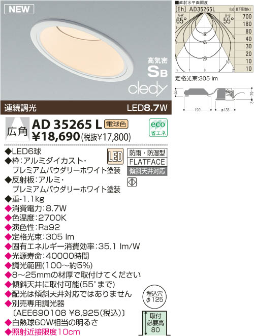 KOIZUMI LED¹âµ¤Ì©¥À¥¦¥ó¥é¥¤¥È AD35265L