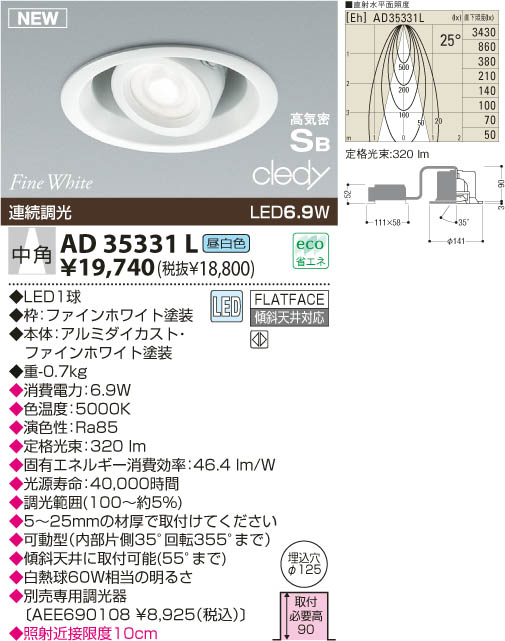 KOIZUMI LED¥æ¥Ë¥Ð¡¼¥µ¥ë¥À¥¦¥ó¥é¥¤¥È AD35331L