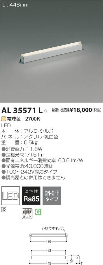 ¥³¥¤¥º¥ß¾ÈÌÀ KOIZUMI LED´ÖÀÜÍÑÅô¶ñ AL35571L