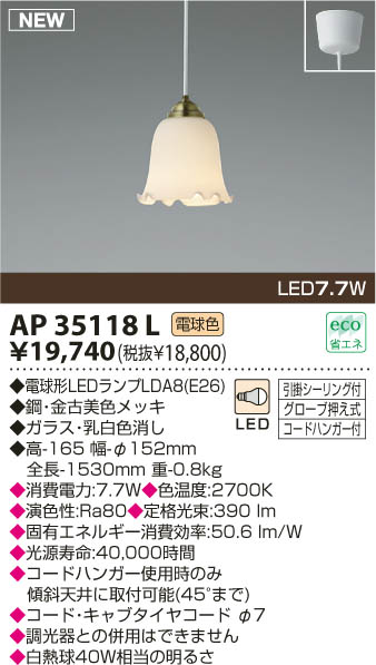 KOIZUMI LED¥Ú¥ó¥À¥ó¥È AP35118L