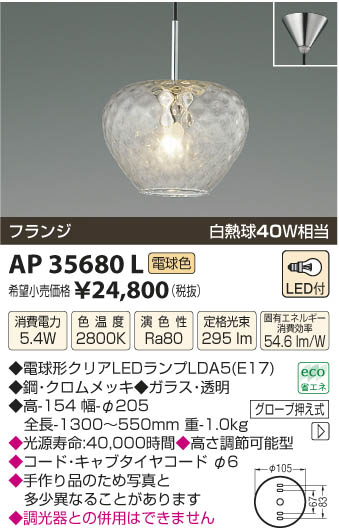 ¥³¥¤¥º¥ß¾ÈÌÀ KOIZUMI ¥Ú¥ó¥À¥ó¥È LED AP35680L