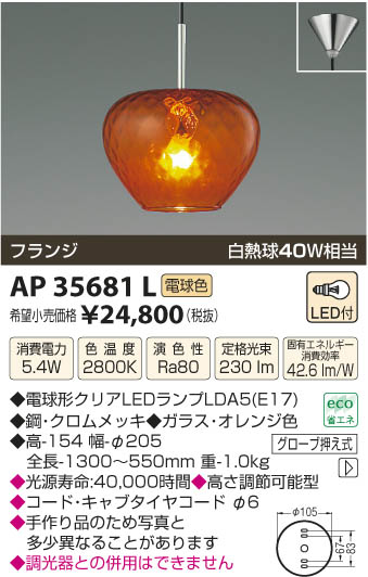 ¥³¥¤¥º¥ß¾ÈÌÀ KOIZUMI ¥Ú¥ó¥À¥ó¥È LED AP35681L