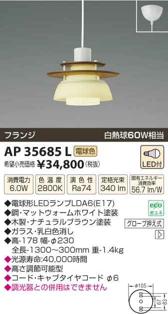 ¥³¥¤¥º¥ß¾ÈÌÀ KOIZUMI ¥Ú¥ó¥À¥ó¥È LED AP35685L