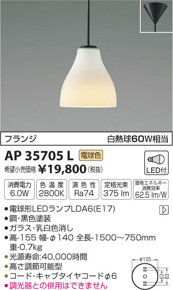 ¥³¥¤¥º¥ß¾ÈÌÀ KOIZUMI ¥Ú¥ó¥À¥ó¥È LED¡ÊÅŵ忧¡Ë AP35705L