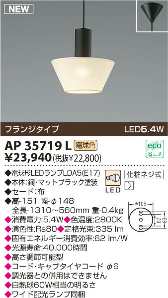 KOIZUMI LED¥Ú¥ó¥À¥ó¥È AP35719L