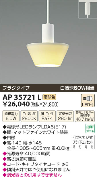 ¥³¥¤¥º¥ß¾ÈÌÀ KOIZUMI LED¥Ú¥ó¥À¥ó¥È AP35721L