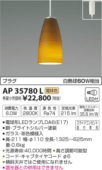 ¥³¥¤¥º¥ß¾ÈÌÀ KOIZUMI ¥Ú¥ó¥À¥ó¥È LED¡ÊÅŵ忧¡Ë AP35780L