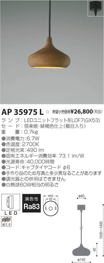 ¥³¥¤¥º¥ß¾ÈÌÀ KOIZUMI LED ¥Ú¥ó¥À¥ó¥È AP35975L