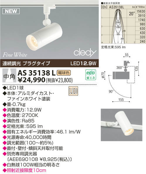 KOIZUMI LED¥¹¥Ý¥Ã¥È¥é¥¤¥È¡Ê¥×¥é¥°¡Ë AS35138L