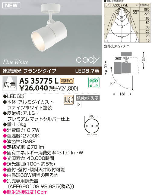 KOIZUMI LED¥¹¥Ý¥Ã¥È¥é¥¤¥È¡Ê¥Õ¥é¥ó¥¸¡Ë AS35775L