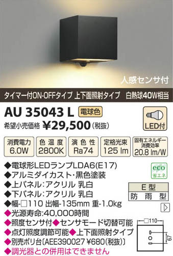 ¥³¥¤¥º¥ß¾ÈÌÀ KOIZUMI LEDËɱ«·¿¥Ö¥é¥±¥Ã¥È AU35043L