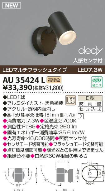 KOIZUMI LED¥¢¥¦¥È¥É¥¢¥¹¥Ý¥Ã¥È¥é¥¤¥È AU35424L