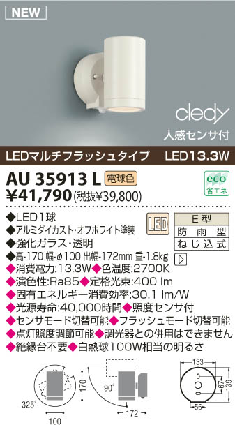 KOIZUMI LED¥¢¥¦¥È¥É¥¢¥¹¥Ý¥Ã¥È¥é¥¤¥È AU35913L