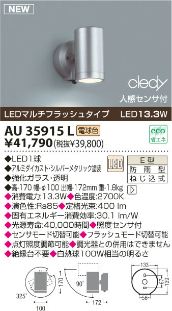 KOIZUMI LED¥¢¥¦¥È¥É¥¢¥¹¥Ý¥Ã¥È¥é¥¤¥È AU35915L