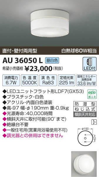 ¥³¥¤¥º¥ß¾ÈÌÀ KOIZUMI LEDËɼ¾·¿¥·¡¼¥ê¥ó¥° AU36050L