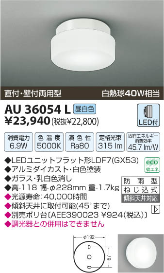 ¥³¥¤¥º¥ß¾ÈÌÀ KOIZUMI LEDËɱ«·¿¥·¡¼¥ê¥ó¥° AU36054L