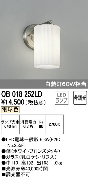 ODELIC ¥ª¡¼¥Ç¥ê¥Ã¥¯ ¥Ö¥é¥±¥Ã¥È OB018252LD