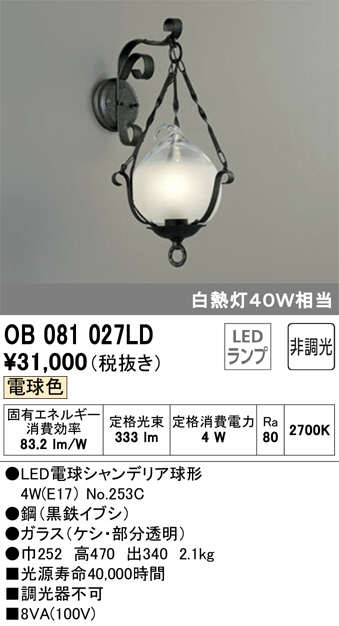 ODELIC ¥ª¡¼¥Ç¥ê¥Ã¥¯ ¥Ö¥é¥±¥Ã¥È OB081027LD