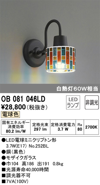 ODELIC ¥ª¡¼¥Ç¥ê¥Ã¥¯ ¥Ö¥é¥±¥Ã¥È OB081046LD
