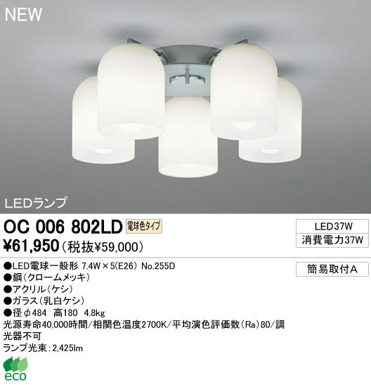 ODELIC ¥ª¡¼¥Ç¥ê¥Ã¥¯ LED ¥·¥ã¥ó¥Ç¥ê¥¢ OC006802LD