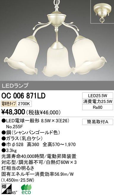 ODELIC ¥ª¡¼¥Ç¥ê¥Ã¥¯ LED ¥·¥ã¥ó¥Ç¥ê¥¢ OC006871LD