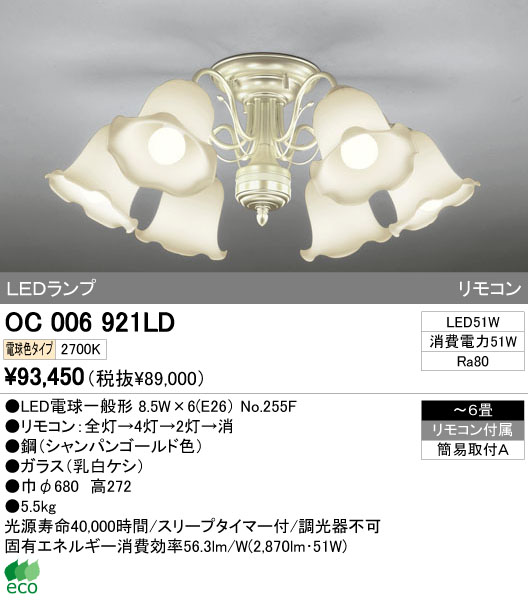 ODELIC ¥ª¡¼¥Ç¥ê¥Ã¥¯ LED ¥·¥ã¥ó¥Ç¥ê¥¢ OC006921LD