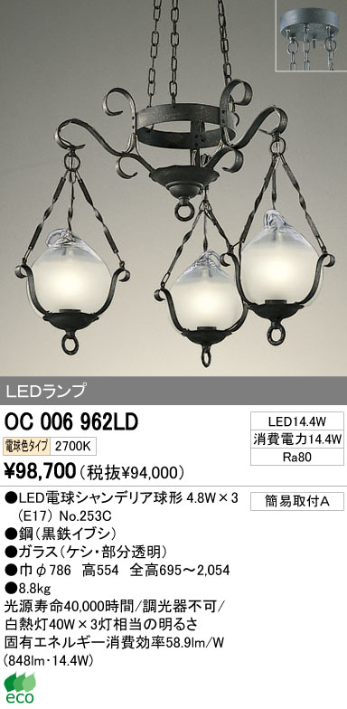 ODELIC ¥ª¡¼¥Ç¥ê¥Ã¥¯ LED ¥·¥ã¥ó¥Ç¥ê¥¢ OC006962LD