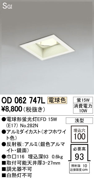 ODELIC ¥ª¡¼¥Ç¥ê¥Ã¥¯ ¥À¥¦¥ó¥é¥¤¥È OD062747L