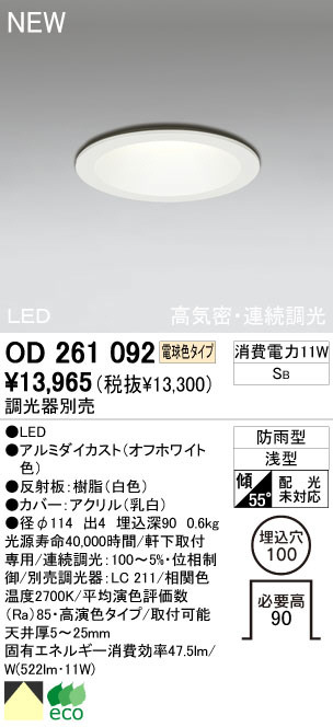 ODELIC ¥ª¡¼¥Ç¥ê¥Ã¥¯ LED ¥¨¥¯¥¹¥Æ¥ê¥¢¥é¥¤¥È OD261092