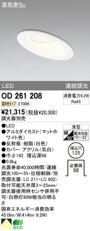 ODELIC ¥ª¡¼¥Ç¥ê¥Ã¥¯ LED ¥À¥¦¥ó¥é¥¤¥È OD261208