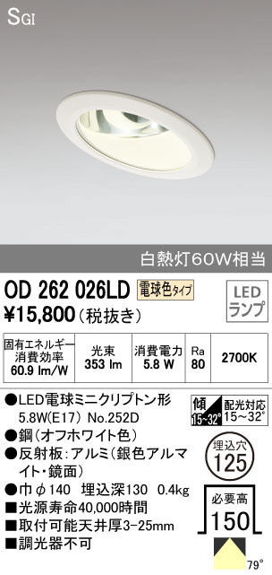 ODELIC ¥ª¡¼¥Ç¥ê¥Ã¥¯ ¥À¥¦¥ó¥é¥¤¥È OD262026LD