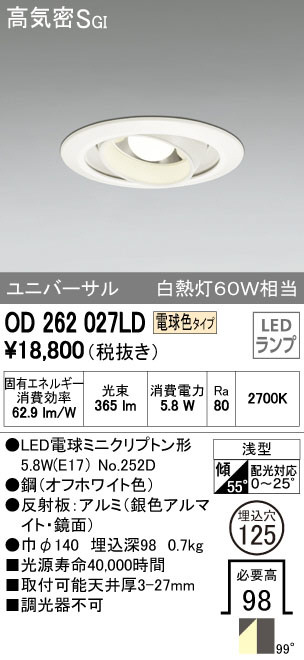 ODELIC ¥ª¡¼¥Ç¥ê¥Ã¥¯ ¥À¥¦¥ó¥é¥¤¥È OD262027LD