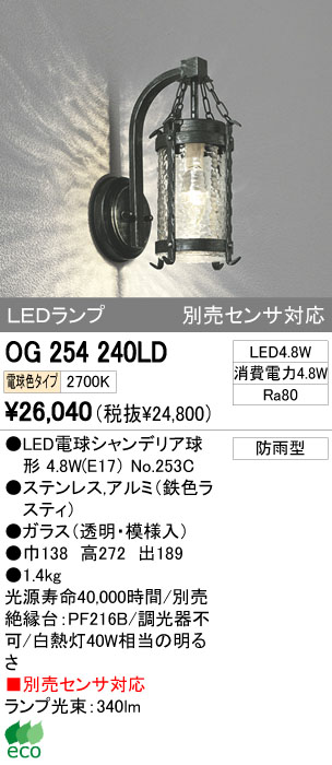 ODELIC ¥ª¡¼¥Ç¥ê¥Ã¥¯ LED ¥¨¥¯¥¹¥Æ¥ê¥¢¥é¥¤¥È OG254240LD