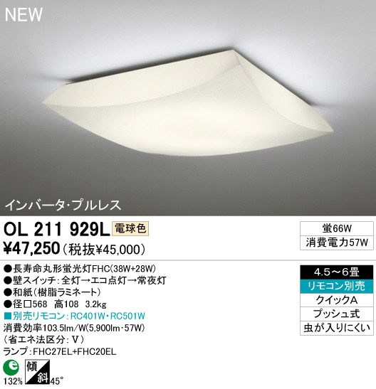 ODELIC ¥ª¡¼¥Ç¥ê¥Ã¥¯ ¥·¡¼¥ê¥ó¥°¥é¥¤¥È OL211929L